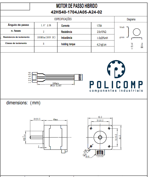 MOTOR DE PASSO NEMA 17 4.2KGF.CM